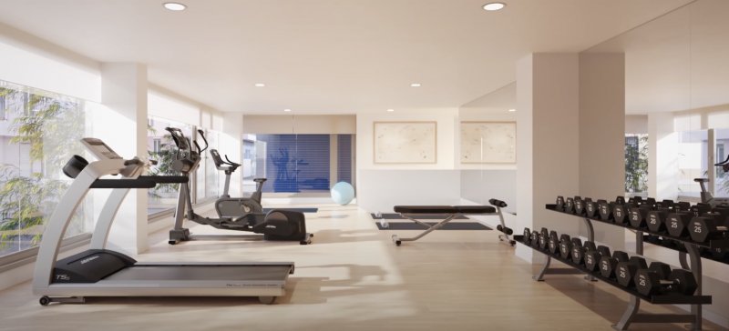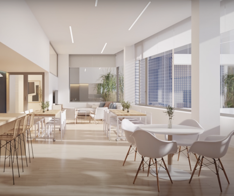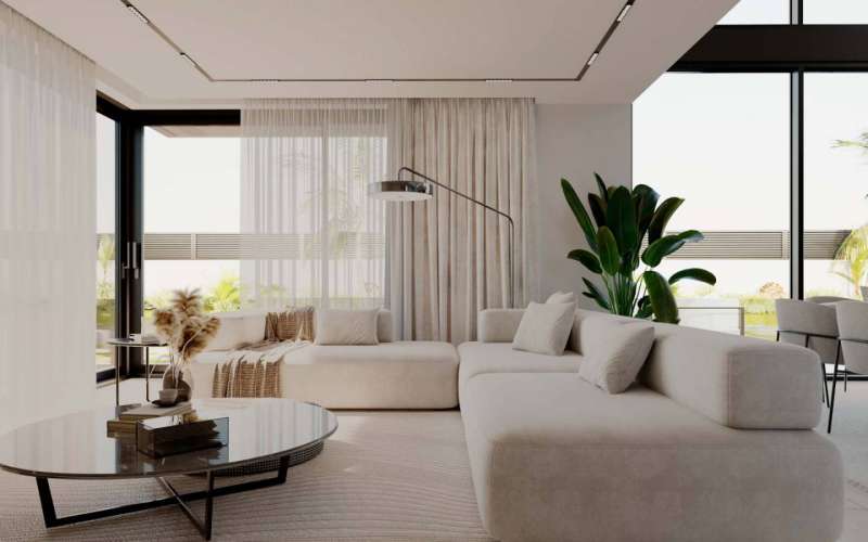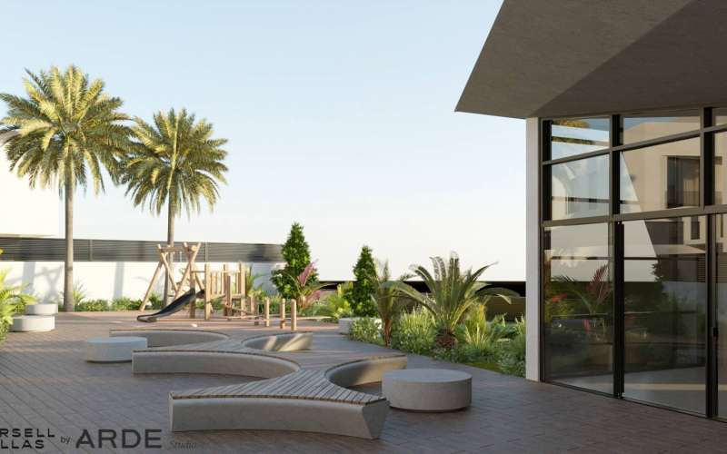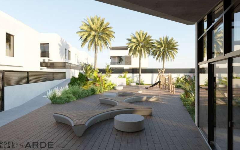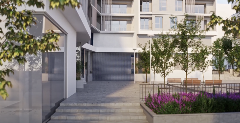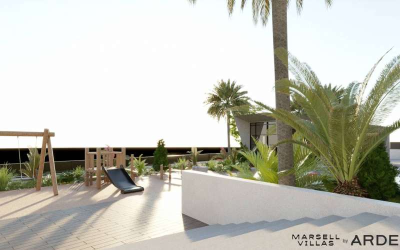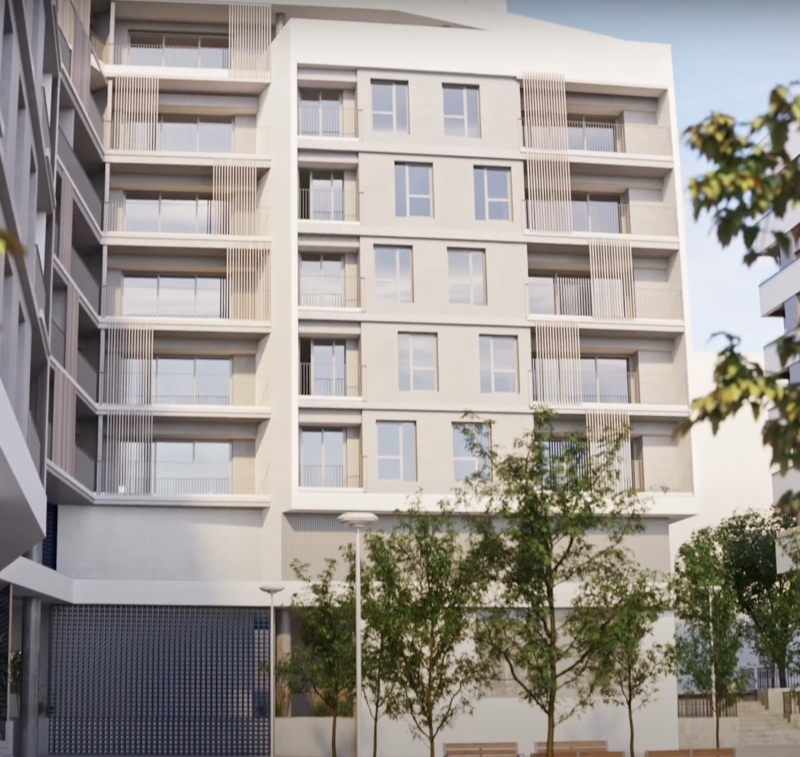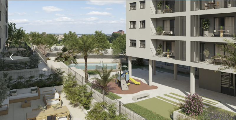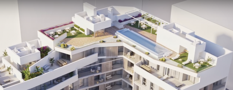 The exterior design of this residential complex in San Juan de Alicante reflects modernity and sustainability. Each flat and penthouse has a spacious 21 m² terrace, providing a perfect space to enjoy the Mediterranean climate and views of the surroundings. The landscaped gardens and communal swimming pool create a relaxing and pleasant atmosphere for residents. The coworking area and gym are integrated into the complex, offering additional amenities for an active and balanced life. The development is equipped with solar panels that power the communal areas, demonstrating a commitment to energy efficiency and care for the environment.