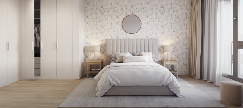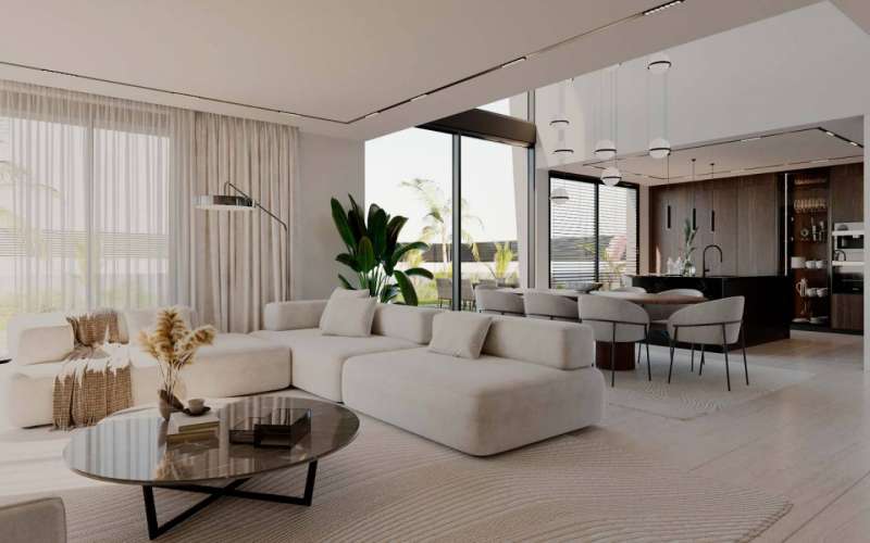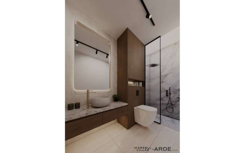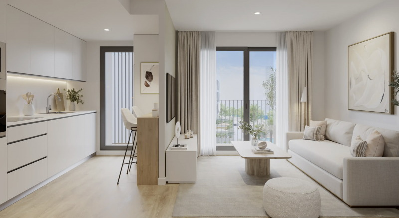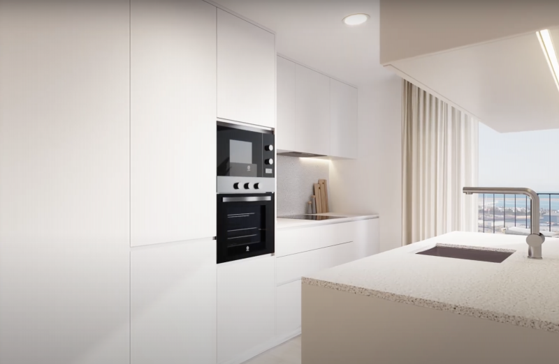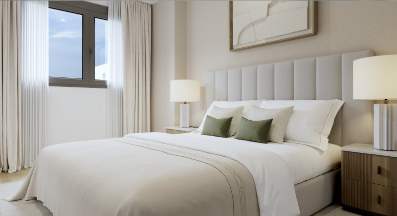 The interiors of the flats and penthouses are designed for maximum comfort and functionality. With a built area of 112 m² and a living area of 103 m², each flat has three double bedrooms and two modern bathrooms. The interior spaces are spacious and bright, thanks to the large windows that let in natural light and offer views of the terraces. The open-plan kitchen, equipped with high quality appliances, integrates seamlessly with the living-dining room, creating an open and welcoming space ideal for everyday living and entertaining. All flats feature efficient air conditioning and air quality systems, LED lighting and low consumption toilets, ensuring low energy consumption and savings on household bills.