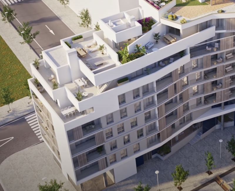 Discover a modern and sustainable lifestyle in the new residential complex of 32 flats and penthouses in San Juan de Alicante, located in the prestigious area of Nou Nazareth. This complex offers a perfect combination of functionality, design and energy efficiency. Each property has spacious terraces, garage space, storage room and access to communal areas such as a gym, coworking area, swimming pool and landscaped gardens. The architecture of the complex has been carefully designed to create an elegant and timeless atmosphere, with high quality finishes and a luminosity that connects the interior spaces with the exterior. In addition, this residential complex is committed to sustainability, optimising energy consumption and using efficient air conditioning and lighting systems, as well as low consumption toilets and solar panels to supply the communal areas.