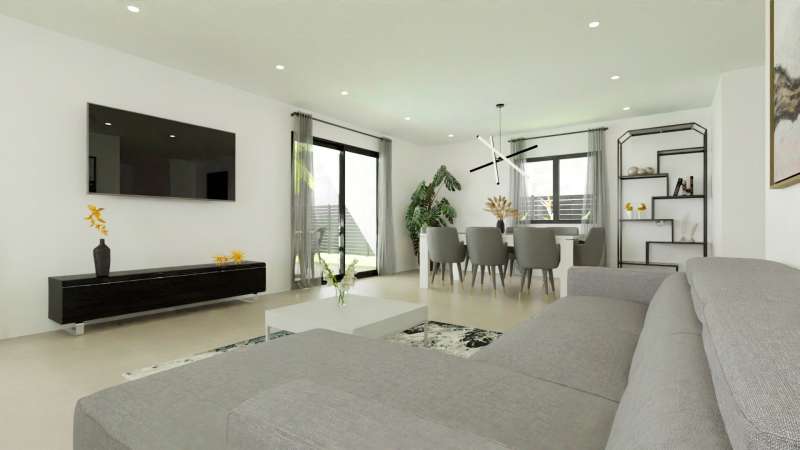 The interiors of these homes are designed for comfort and functionality. With three bedrooms and three bathrooms, each with a modern and elegant design, they offer a cosy atmosphere for the whole family. The open-plan kitchen and living room allow for a seamless integration of the spaces, creating a bright and spacious ambience. The materials selected for the interiors are designed for durability and style, while the high quality finishes ensure a sophisticated and contemporary ambience. The interiors are designed to suit modern living needs, offering a comfortable and welcoming place to enjoy both day-to-day living and special moments with the family.