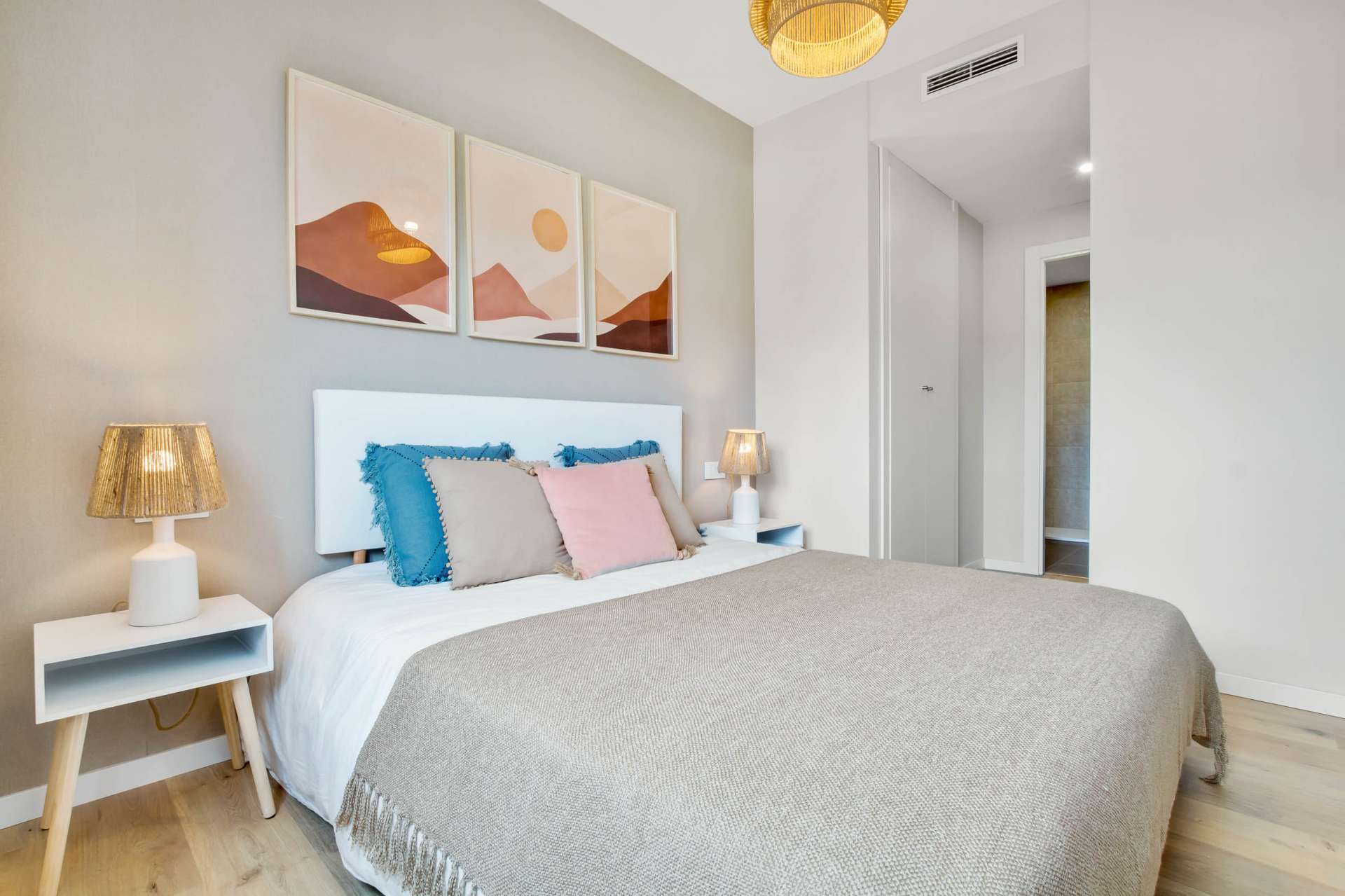 The interiors of the homes are characterised by practical, high-quality finishes, designed to provide maximum comfort. Armoured front doors ensure security, while tilt and turn windows in the bedrooms allow for efficient ventilation. Wooden floors add warmth and elegance to the spaces, and the installation of air conditioning ensures a comfortable climate at any time of the year. In addition, residents have the option to personalise their home with an upgrade pack, tailoring the home to their specific tastes and needs, making each home a unique and personal space.