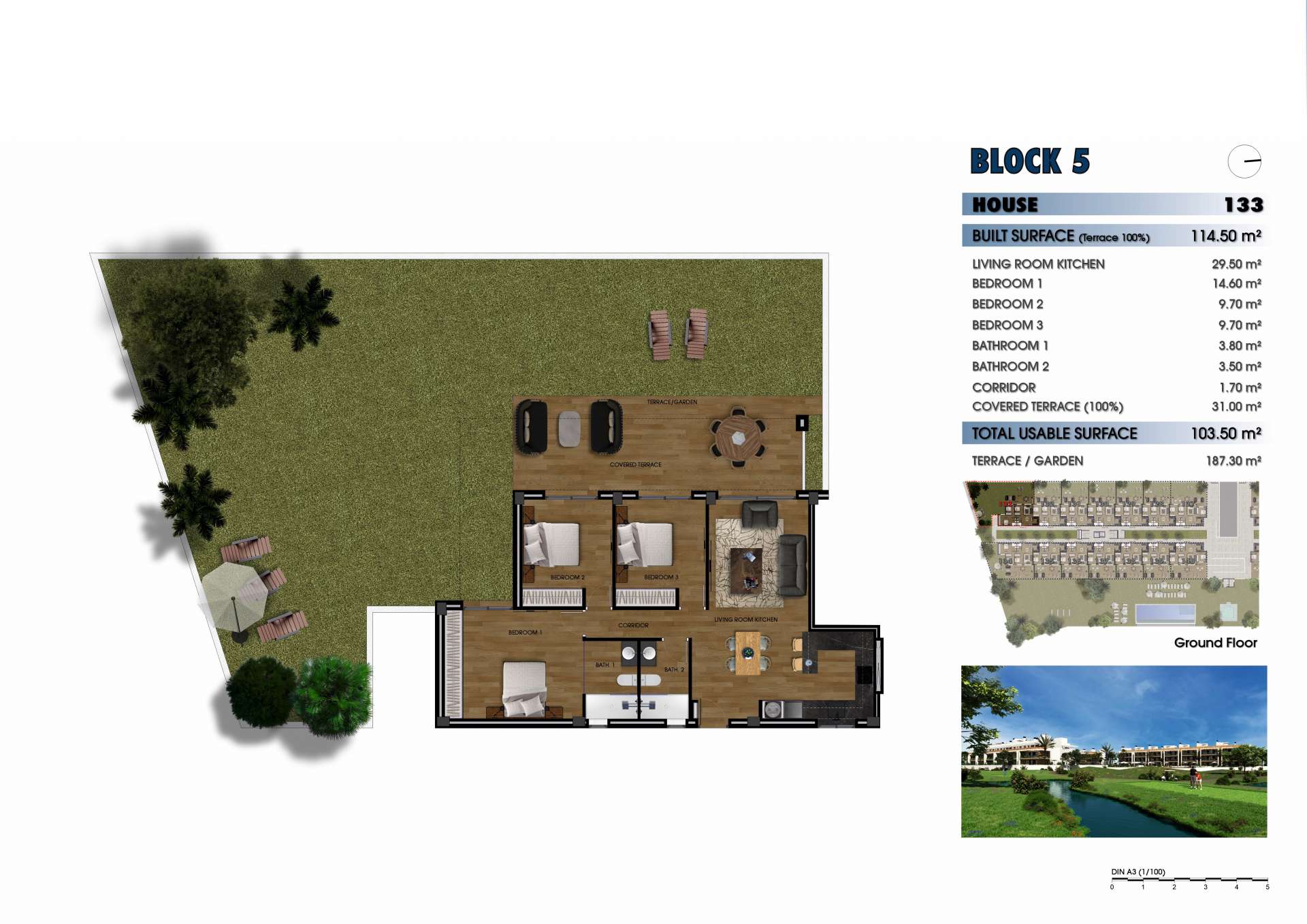 New Residential Complex Close to La Serena Golf, Los Alcazares. This exclusive new development consists of 244 flats of 2 and 3 bedrooms distributed in 8 blocks, plus 20 private villas. With a privileged location on the front line of the golf course "La Serena Golf", the flats are designed to offer comfort and modernity. Residents will be able to enjoy communal swimming pools, spacious communal areas and spectacular views of both the golf course and surrounding green areas. Each flat includes a parking space and private storage room. The homes are due for completion in 2024, offering a unique opportunity to live in one of the best areas of the Costa Cálida.
