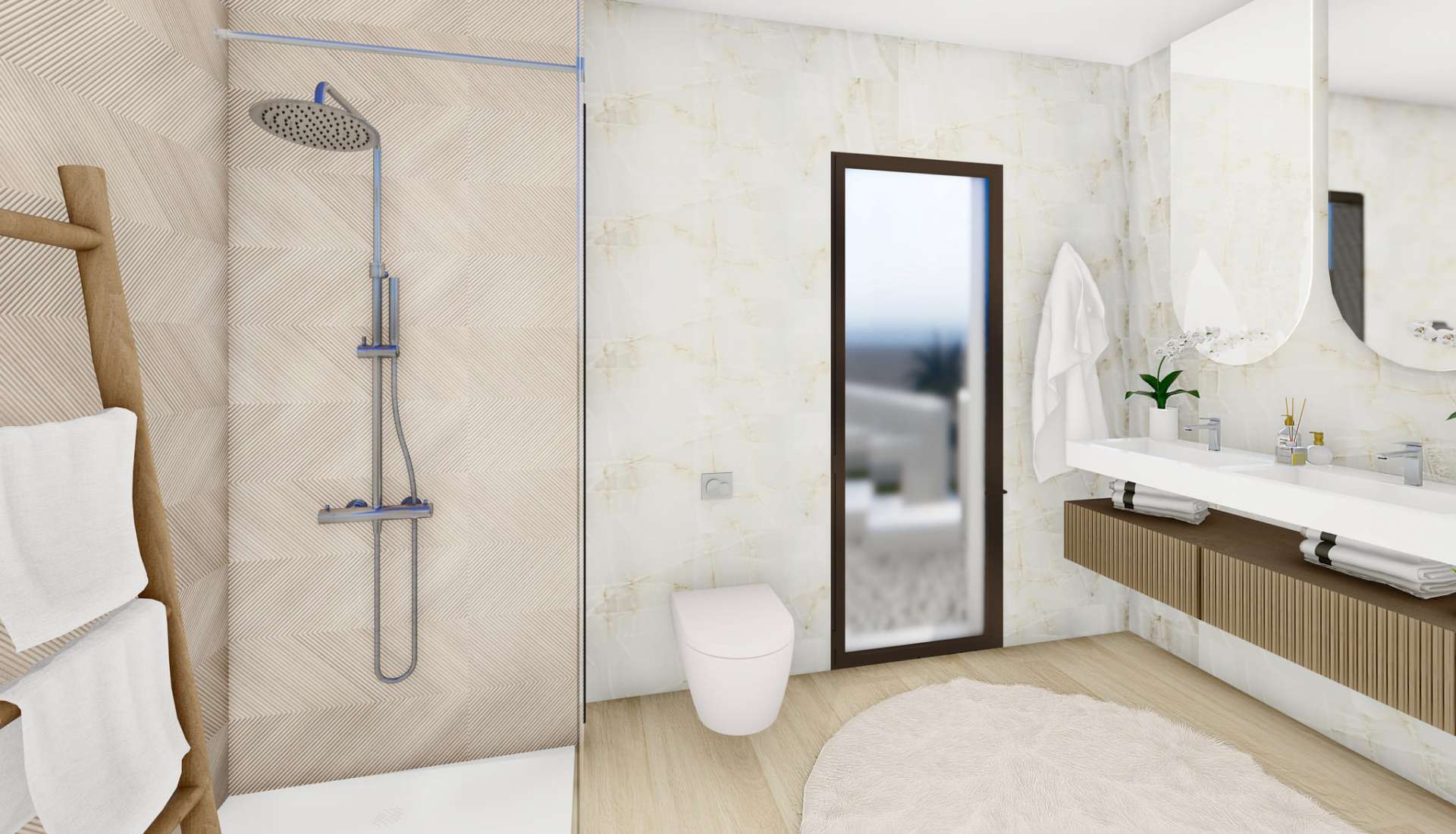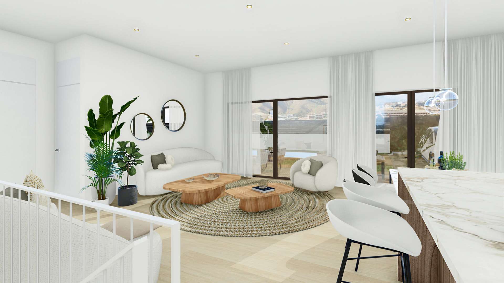 The interiors of the homes reflect a perfect balance between modernity and comfort, designed to maximise functionality and well-being. Spacious, open-plan living spaces provide a seamless transition between living, dining and kitchen areas, creating a welcoming atmosphere conducive to family living and entertaining. The use of high quality materials and elegant finishes is evident in every detail, from the floors to the ceilings, offering a refined and enduring aesthetic. The abundant natural light that penetrates through the large windows illuminates every corner, enhancing the soft colours and natural textures that dominate the interior design palette. Each room is designed for comfort and privacy, with a special focus on the harmony between design and practical functionality.