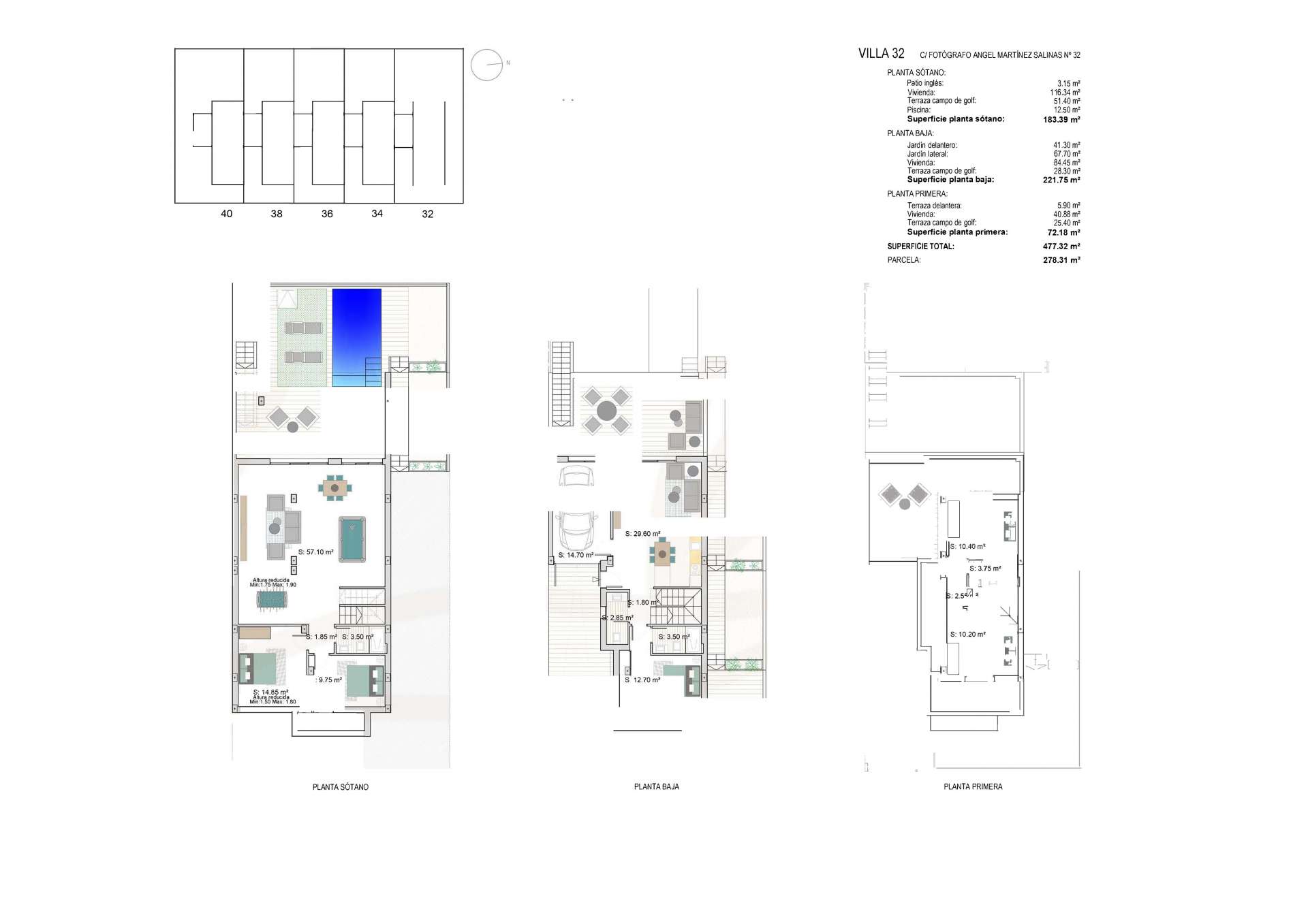 Property Description This exclusive new development in Serena Golf offers modern semi-detached and townhouses with a sophisticated and functional design, ideal for those looking for a home on the Mediterranean coast. With a total of 224 m² built on plots of 278 m², these properties stand out for their 3 spacious bedrooms and 4 en-suite bathrooms, providing comfort and privacy. Situated in Los Alcázares, a privileged location close to beautiful beaches and with stunning views of the golf course, these homes are perfect for sports lovers and those who desire a tranquil and luxurious lifestyle. They also feature a private swimming pool and solarium that perfectly complement their elegant design.