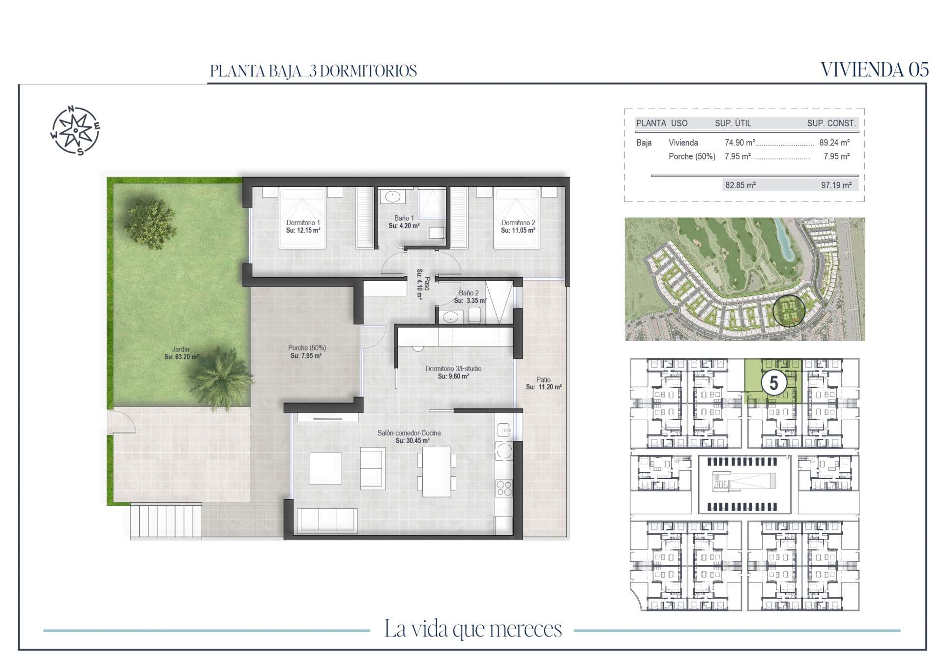 The development is integrated in a unique environment, where the views of the golf course and the mountains are the protagonists. The landscaped areas combine Mediterranean and tropical species, creating green spaces that invite you to relax. The ground floor bungalows have a front garden and backyard, and some also include a private parking space inside the plot. The top floor properties have a large porch and a private solarium with outdoor kitchen, perfect for relaxing or sharing moments outdoors.