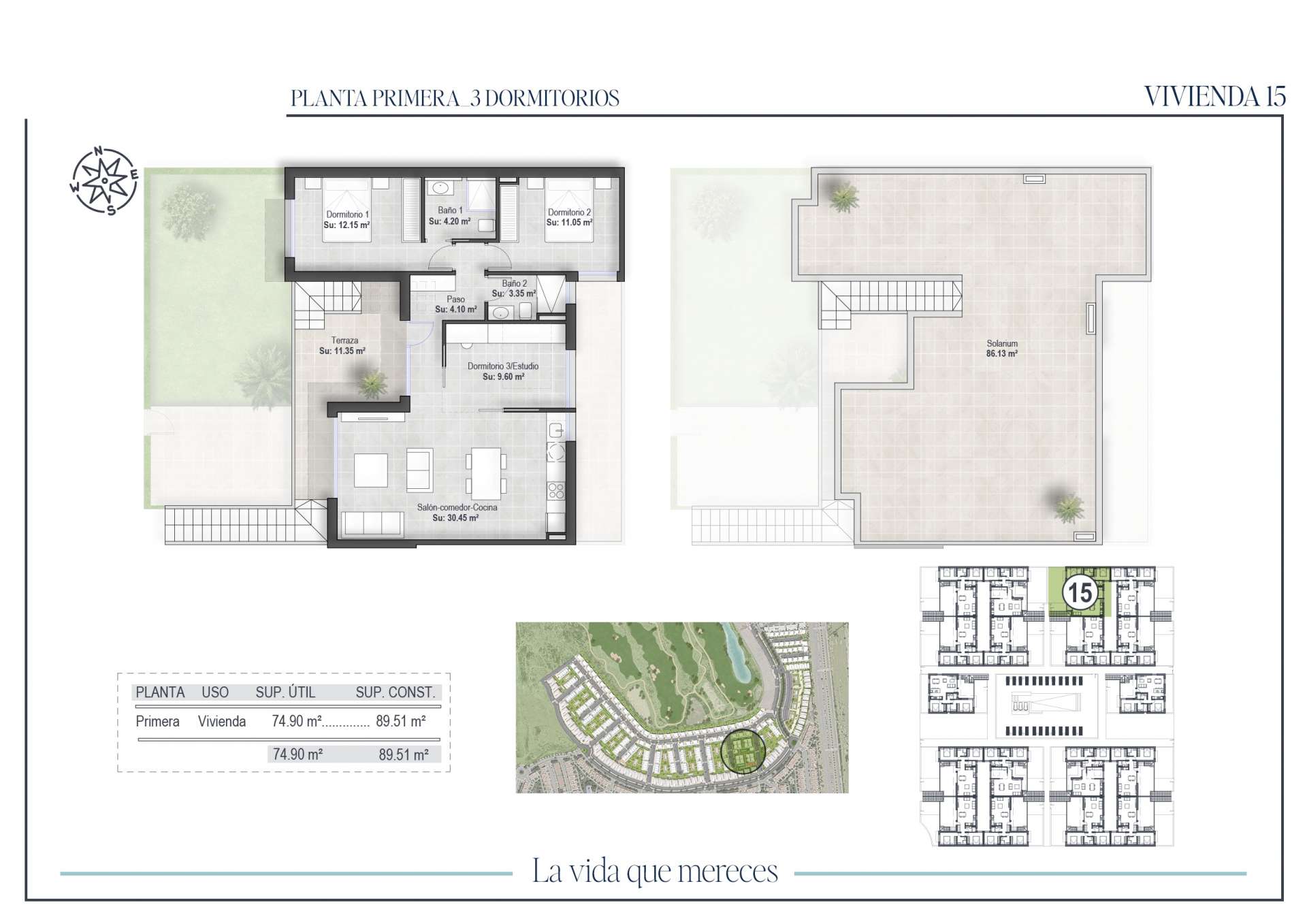 The development is integrated in a unique environment, where the views of the golf course and the mountains are the protagonists. The landscaped areas combine Mediterranean and tropical species, creating green spaces that invite you to relax. The ground floor bungalows have a front garden and backyard, and some also include a private parking space inside the plot. The top floor properties have a large porch and a private solarium with outdoor kitchen, perfect for relaxing or sharing moments outdoors.