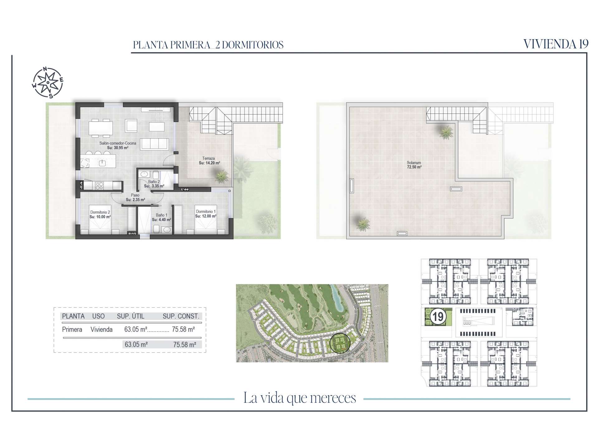 The development is integrated in a unique environment, where the views of the golf course and the mountains are the protagonists. The landscaped areas combine Mediterranean and tropical species, creating green spaces that invite you to relax. The ground floor bungalows have a front garden and backyard, and some also include a private parking space inside the plot. The top floor properties have a large porch and a private solarium with outdoor kitchen, perfect for relaxing or sharing moments outdoors.