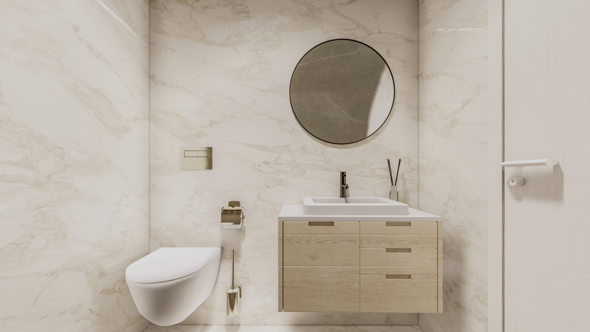 The interiors of the flats and penthouses are designed for maximum comfort and functionality. With a built area of 83 m² and a living area of 73 m², each flat has three double bedrooms and two modern bathrooms. The interior spaces are spacious and bright, thanks to the large windows that let in natural light and offer views of the terraces. The open plan kitchen, equipped with high quality appliances, integrates seamlessly with the living room, creating an open and welcoming space ideal for everyday living and entertaining. The bedrooms feature built-in wardrobes, providing ample storage space. The bathrooms are equipped with high-end finishes and modern fittings, ensuring additional comfort.