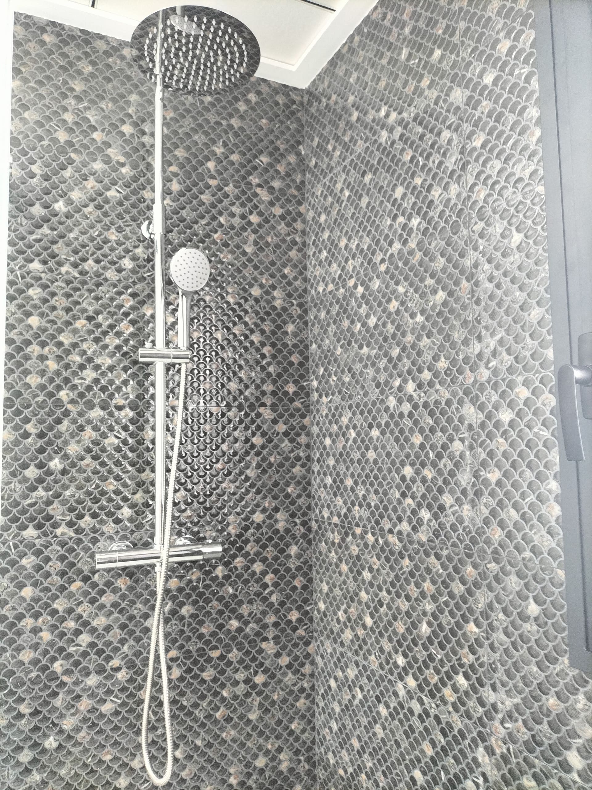 With an average living area of 120 m² distributed over two floors, the villas feature a modern and functional design. The American-style kitchens are fully equipped with high quality appliances and integrate perfectly with the living and dining areas. Large windows connect the interior with the exterior, allowing natural light to illuminate every corner of the home. The three bedrooms offer comfort and space, creating a welcoming environment for relaxation.