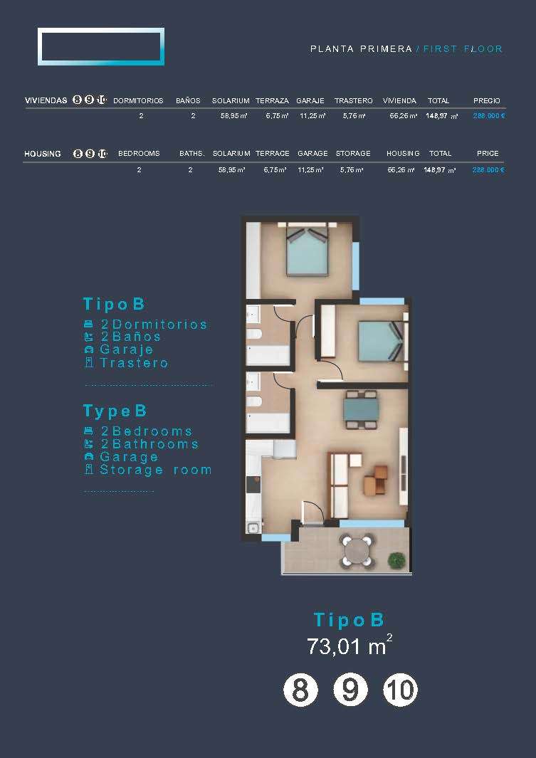 Contemporary architecture blends in with the surroundings to create a harmonious and elegant ensemble. The ground floor homes have private gardens that become true personal oases, while the upper floors stand out for their large, sunny solariums, perfect for relaxing in the open air and enjoying unobstructed views. All this in a quiet residential area, opposite a park and with immediate access to natural spaces such as the Regional Park of Salinas y Arenales de San Pedro del Pinatar. Just a few minutes away, the beaches of the Mediterranean complete a truly privileged location.