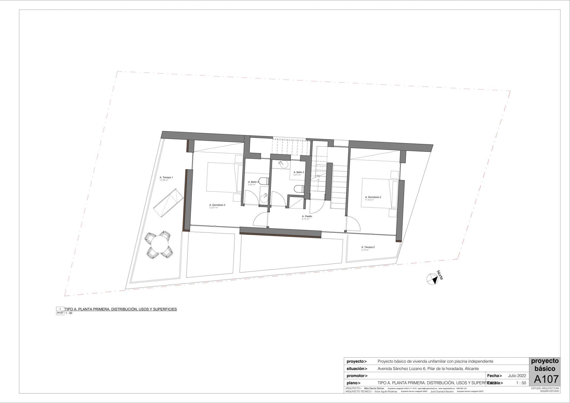 On the ground floor you will find one of the bedrooms, a bathroom and the spacious living room with open kitchen. On the first floor you will find 2 more bedrooms and 2 bathrooms, one of them en suite. In all villas, the master bedroom also has a private terrace on this floor. Each villa also has a spacious 50m2 roof terrace with sea views. The villas also feature fully finished kitchen with all appliances, full installation of air conditioning, fully finished bathrooms, fitted wardrobes and electric blinds.