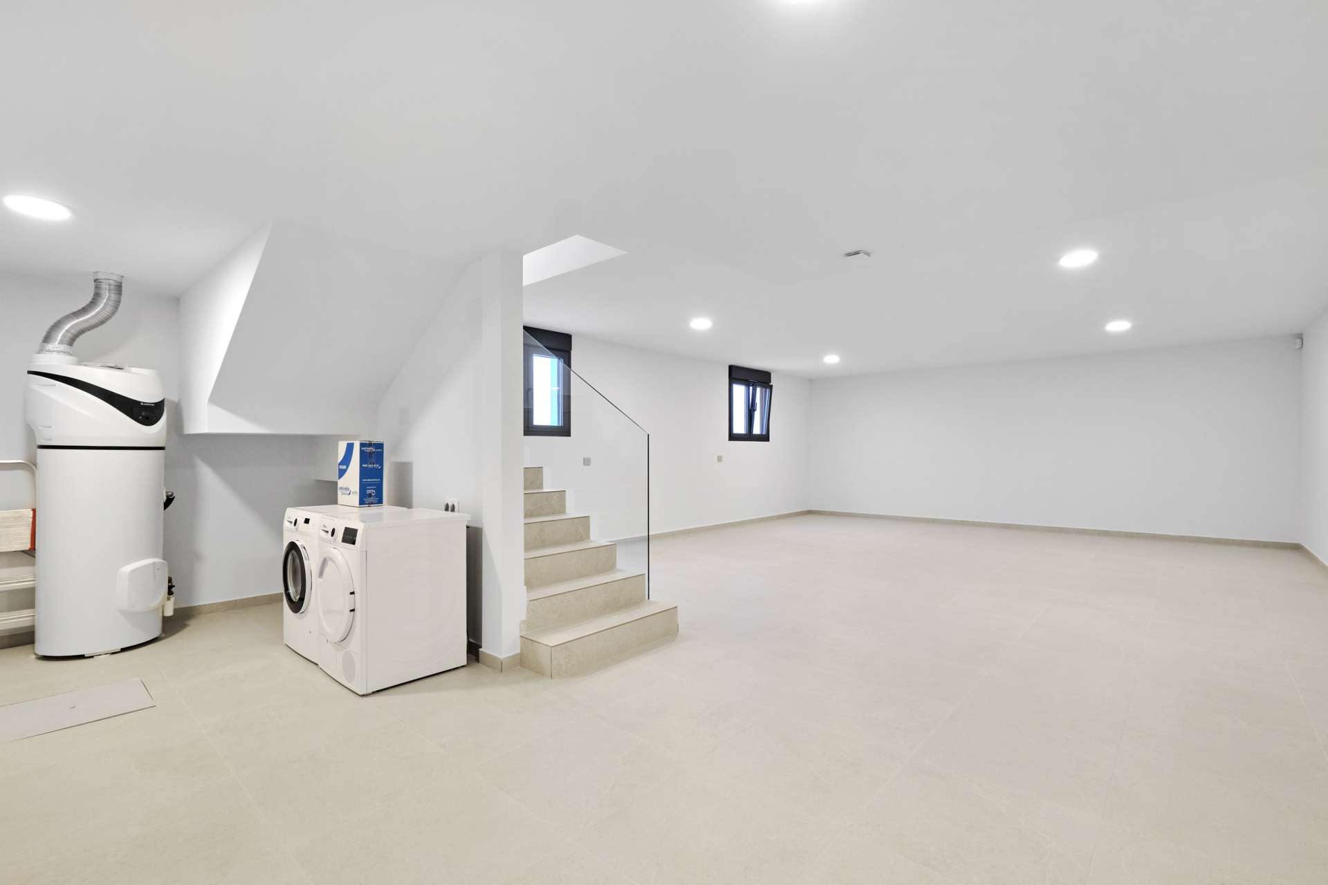 The interiors of this villa are equally impressive. The design seamlessly blends elegance and comfort. Spacious rooms boast an abundance of natural light, and high quality finishes are found throughout. The main floor houses a modern kitchen and an open-concept living room, while the bedrooms on the upper floor offer retreat and privacy. The interior spaces are a perfect balance of luxury and functionality, creating a welcoming and sophisticated home.