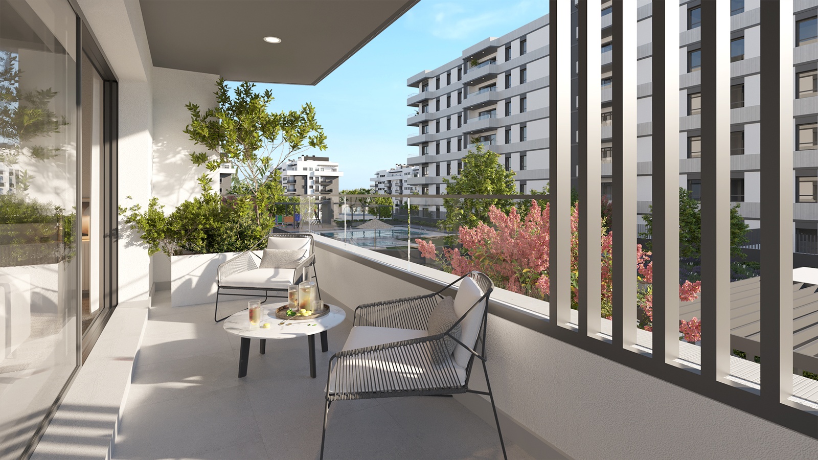 El conjunto destaca por su arquitectura contemporánea y líneas limpias, fusionadas con elementos naturales y materiales sostenibles. Las viviendas se distribuyen en un entorno tranquilo, rodeado de zonas verdes que aportan frescura y un ambiente relajado. Todas las unidades cuentan con terrazas privadas que invitan a disfrutar del clima mediterráneo durante todo el año, convirtiéndose en extensiones naturales del hogar.