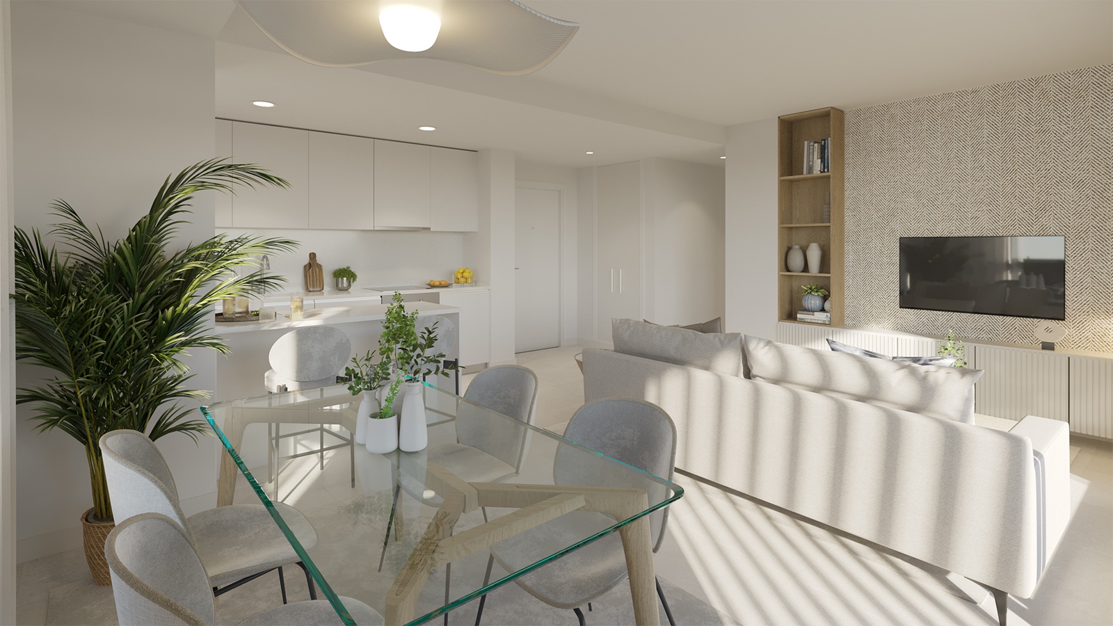 Los interiores han sido diseñados pensando en la funcionalidad y el estilo. Amplios espacios abiertos, una excelente entrada de luz natural y acabados de alta calidad crean un ambiente acogedor y moderno. Cocinas integradas, zonas de estar versátiles y dormitorios cómodos forman parte de un diseño que se adapta a las necesidades del día a día, priorizando el confort sin renunciar al diseño.
