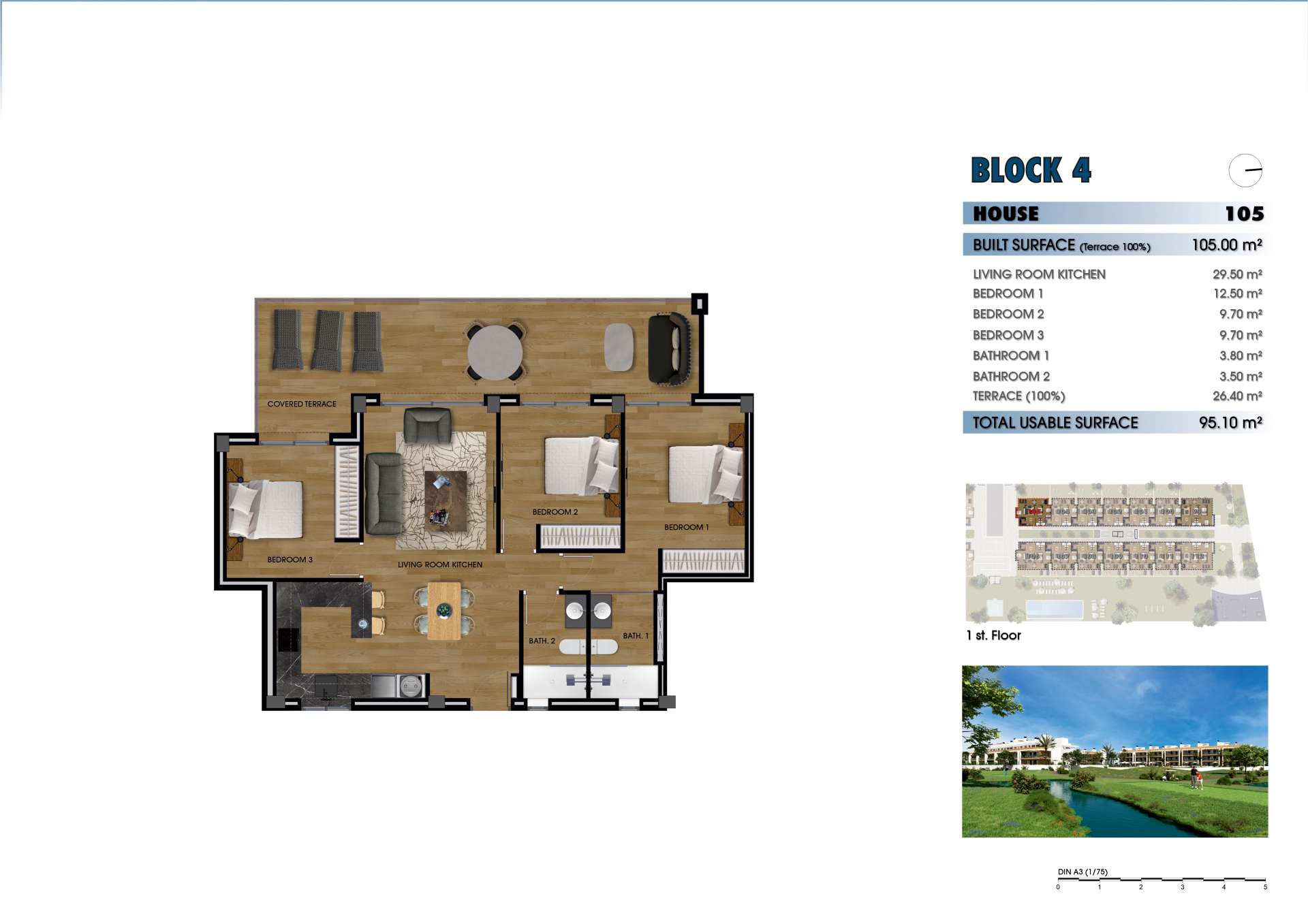 Description de la propriété Nouveau complexe résidentiel à proximité de La Serena Golf, Los Alcazares. Ce nouveau projet exclusif se compose de 244 appartements de 2 et 3 chambres à coucher répartis en 8 blocs, ainsi que de 20 villas privées. Bénéficiant d'une situation privilégiée en première ligne du terrain de golf "La Serena Golf", les appartements sont conçus pour offrir confort et modernité. Les résidents pourront profiter de piscines communes, d'espaces communs spacieux et de vues spectaculaires sur le terrain de golf et les espaces verts environnants. Chaque appartement comprend une place de parking et un local de rangement privé. Les maisons devraient être achevées en 2024, offrant une occasion unique de vivre dans l'un des meilleurs quartiers de la Costa Cálida.
