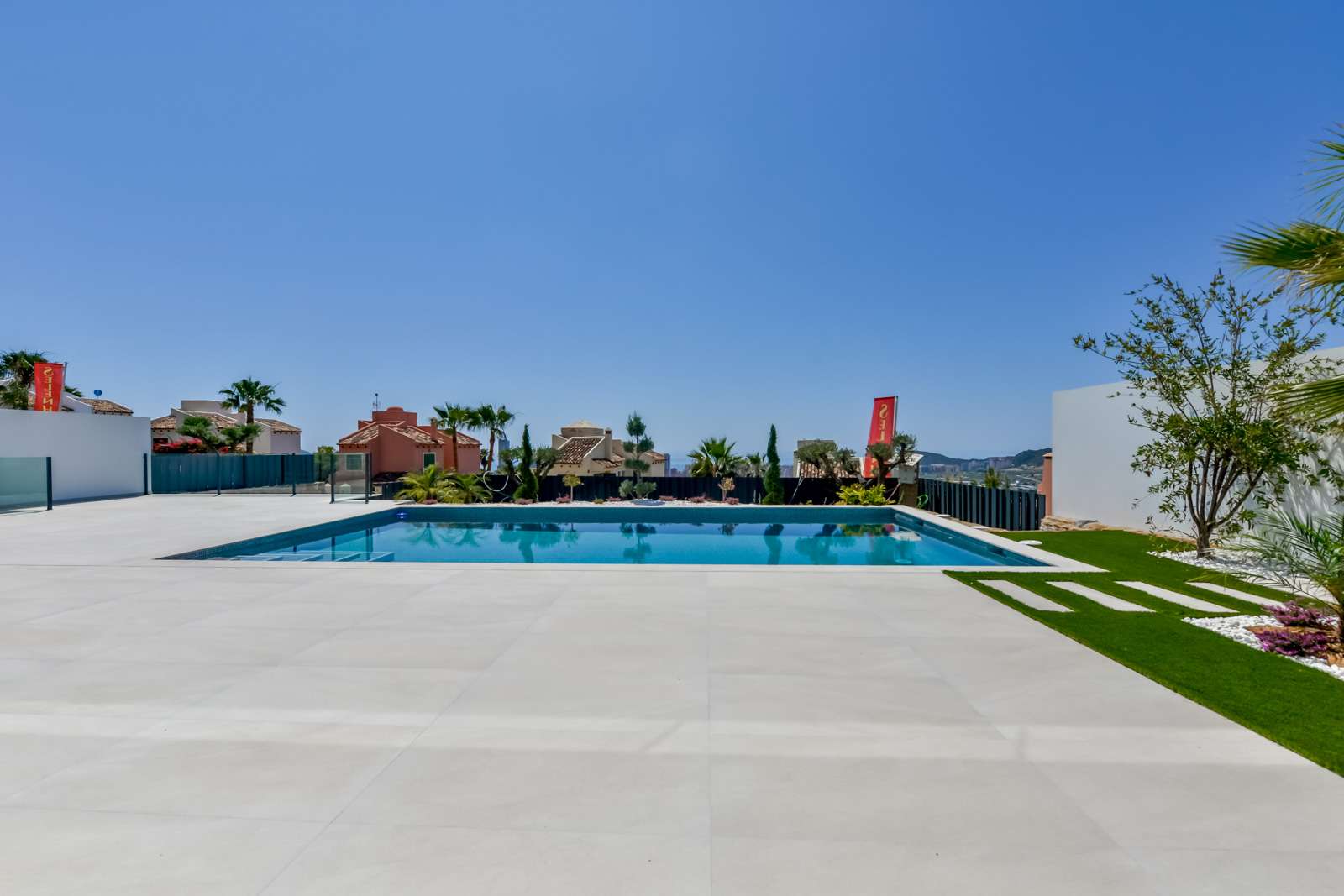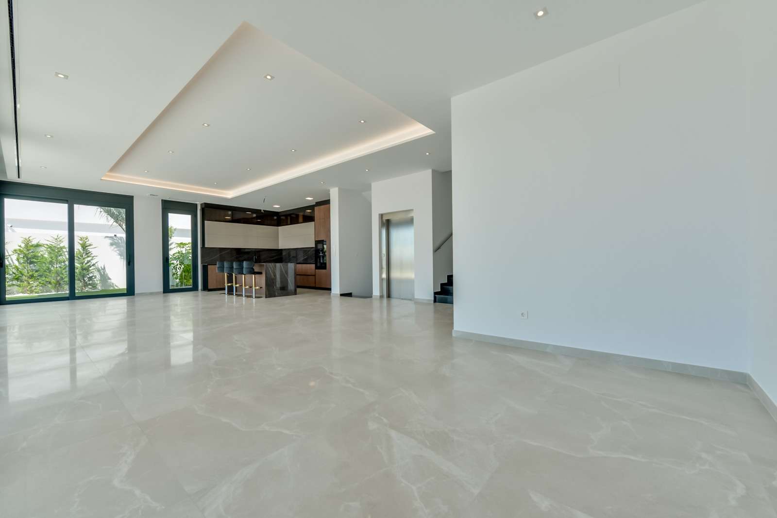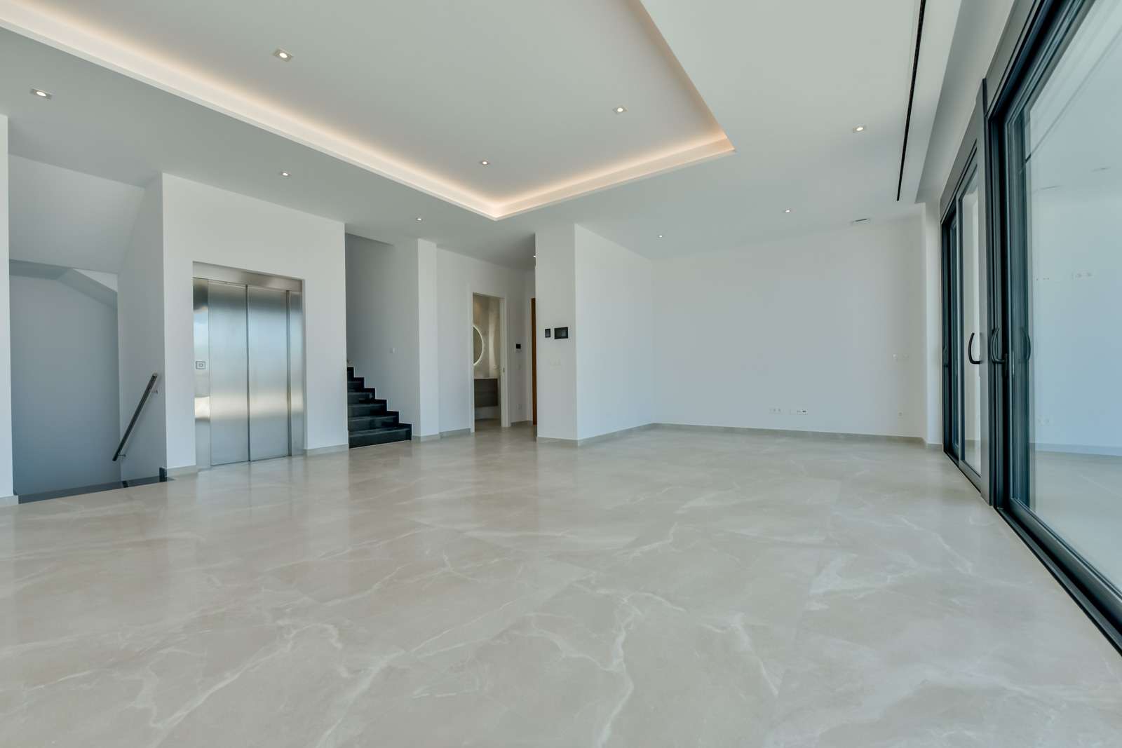 Découvrez la nouvelle villa de luxe avec vue sur la mer à Moraira, une retraite exquise qui allie le design moderne et le confort à la beauté naturelle de la Costa Blanca. Cette toute nouvelle villa est conçue avec des géométries simples et pures, articulant des espaces intérieurs qui s'écoulent harmonieusement vers l'extérieur. Située sur un terrain de 1 864 m², la propriété dispose d'une surface construite de 370 m², comprenant de spacieuses terrasses et un solarium offrant des vues panoramiques sur la mer. La villa dispose de 5 chambres doubles, toutes avec salle de bains privative, et d'un grand espace ouvert de plus de 90 m² pour la cuisine, la salle à manger et le salon. Grâce à des solutions techniques et constructives de pointe, cette maison de luxe offre un maximum de fonctionnalités dans un environnement serein et sophistiqué.