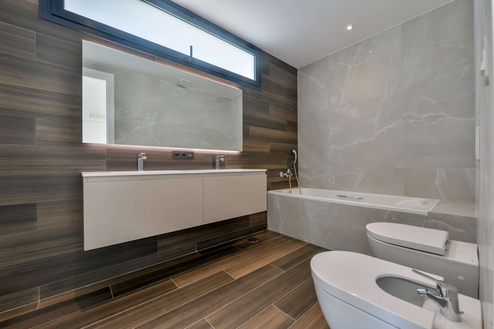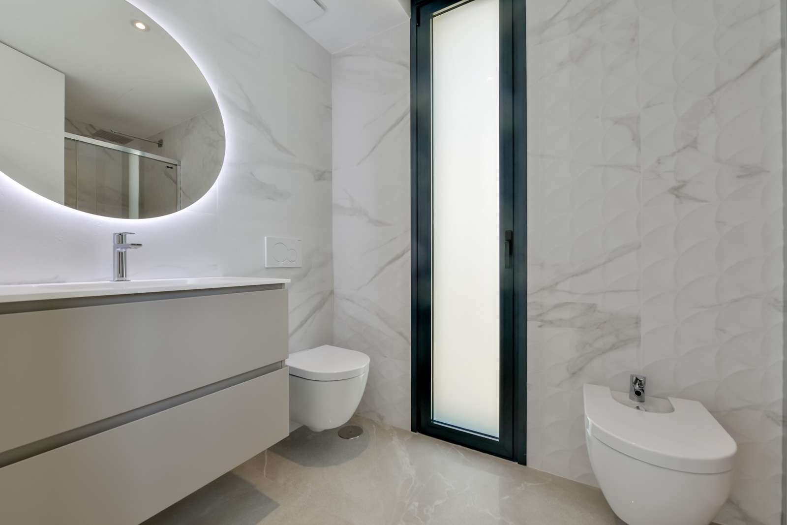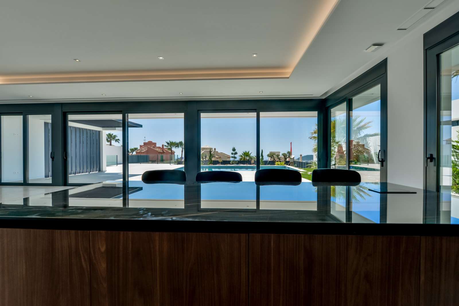L'intérieur de la villa est conçu pour offrir un espace de vie luxueux et fonctionnel. Au rez-de-chaussée, un hall d'entrée spacieux mène à un garage, une grande cave à vin, une salle de stockage et un gymnase, offrant toutes les commodités nécessaires. L'étage supérieur abrite les chambres principales, chacune avec sa salle de bains privative, et un espace ouvert de plus de 90 m² comprenant la cuisine, la salle à manger et le salon. Cet espace est entouré de grandes fenêtres qui laissent entrer beaucoup de lumière naturelle et offrent des vues panoramiques à 180º sur le paysage. Les finitions de haute qualité et le design détaillé garantissent une ambiance élégante et confortable. La villa est équipée des dernières solutions techniques et constructives, garantissant une expérience de vie luxueuse.