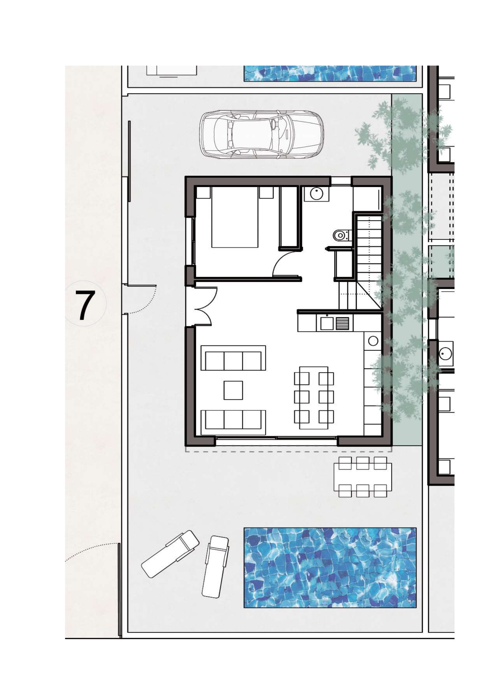 Het interieur van deze villa is al even indrukwekkend. Het ontwerp combineert naadloos elegantie en comfort. Ruime kamers bieden een overvloed aan natuurlijk licht en overal vind je hoogwaardige afwerkingen. Op de begane grond vind je een moderne keuken en een open woonkamer, terwijl de slaapkamers op de bovenverdieping ruimte en privacy bieden. De binnenruimtes zijn een perfecte balans tussen luxe en functionaliteit, waardoor een gastvrij en verfijnd huis is ontstaan.