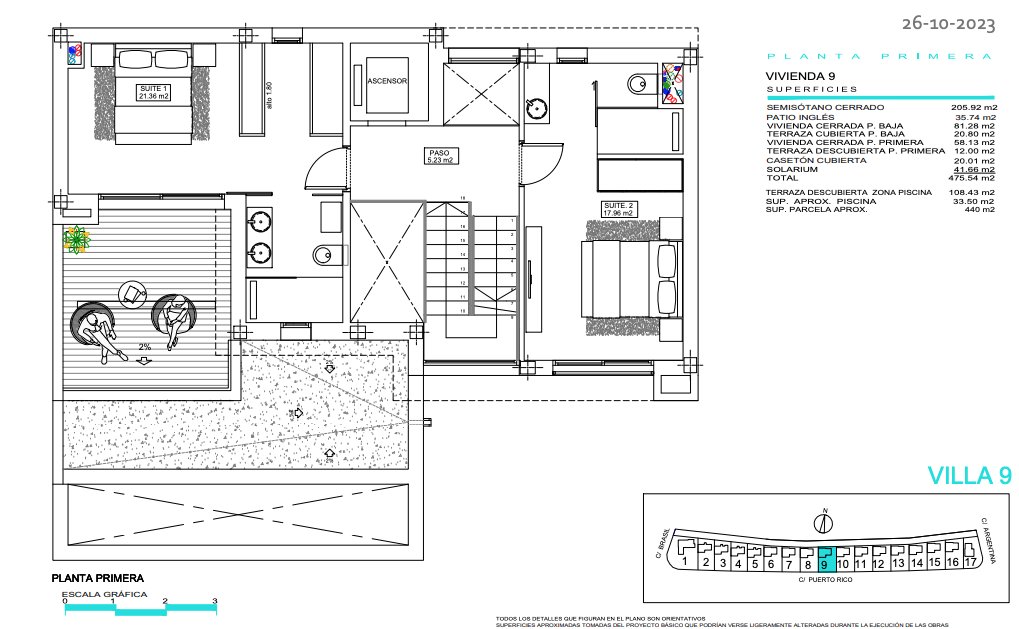 Beschrijving van het pand bestaat uit verschillende wooncomplexen, waaronder de "Orange residential" met 17 luxe villa's. Elke villa heeft een panoramisch uitzicht op zee vanaf elk deel van de voorgevel. Villa's met twee verdiepingen, solarium, binnentuin met een grote mezzanine, overloopzwembad en privéparkeerplaats. Elke villa is uitgerust met een lift. Deze villa's zijn uitzonderlijk vanwege hun design en comfort: ruime woonkamer, grote slaapkamers met eigen badkamer op de eerste verdieping en solarium. Directe toegang vanaf de begane grond tot het moderne overloopzwembad en het grote terras, een idyllische plek om je vakantie door te brengen, te ontspannen en te genieten van de zonsondergangen en het uitzicht op zee van Benidorm.