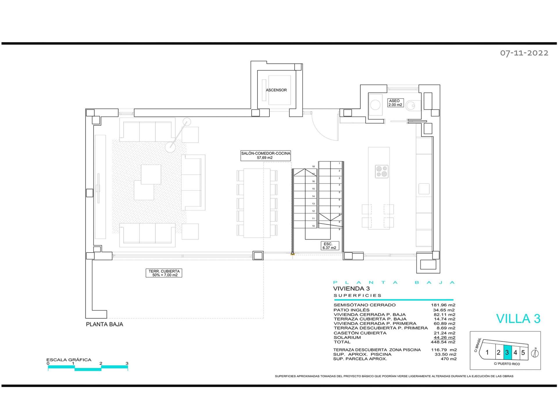 Beschrijving van het pand bestaat uit verschillende wooncomplexen, waaronder de "Orange residential" met 17 luxe villa's. Elke villa heeft een panoramisch uitzicht op zee vanaf elk deel van de voorgevel. Villa's met twee verdiepingen, solarium, binnentuin met een grote mezzanine, overloopzwembad en privéparkeerplaats. Elke villa is uitgerust met een lift. Deze villa's zijn uitzonderlijk vanwege hun design en comfort: ruime woonkamer, grote slaapkamers met eigen badkamer op de eerste verdieping en solarium. Directe toegang vanaf de begane grond tot het moderne overloopzwembad en het grote terras, een idyllische plek om je vakantie door te brengen, te ontspannen en te genieten van de zonsondergangen en het uitzicht op zee van Benidorm.
