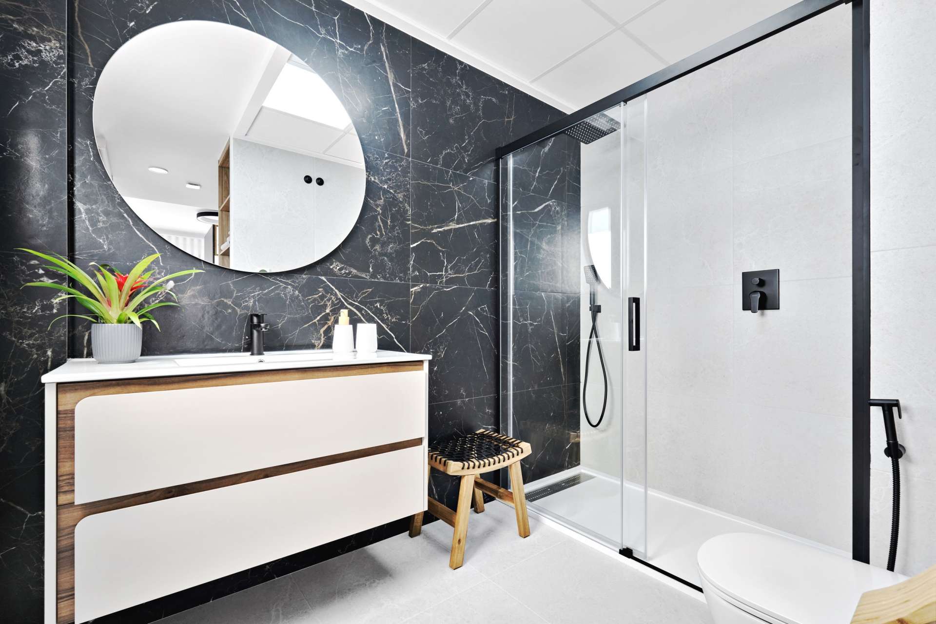 Het interieur van deze villa is al even indrukwekkend. Het ontwerp combineert naadloos elegantie en comfort. Ruime kamers bieden een overvloed aan natuurlijk licht en overal vind je hoogwaardige afwerkingen. Op de begane grond vind je een moderne keuken en een open woonkamer, terwijl de slaapkamers op de bovenverdieping ruimte en privacy bieden. De binnenruimtes zijn een perfecte balans tussen luxe en functionaliteit, waardoor een gastvrij en verfijnd huis is ontstaan.