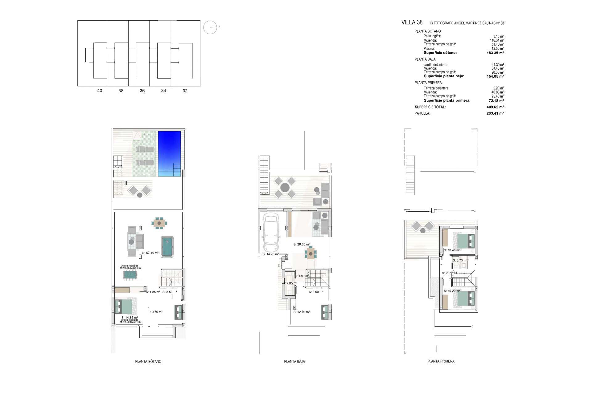 Дома отличаются современным и привлекательным внешним дизайном с современной отделкой, которая идеально сочетается с природным окружением поля для гольфа. Каждый дом окружен тщательно благоустроенным частным садом, создающим спокойную обстановку и ощущение открытого пространства. Участок площадью 278 м² предлагает просторную открытую площадку, включая частный бассейн, идеально подходящий для отдыха и наслаждения средиземноморским климатом. Кроме того, террасы площадью 110 м² предоставляют дополнительное пространство для отдыха на свежем воздухе, обедов и развлечений с видом на поле для гольфа. Территория комплекса полностью огорожена, что обеспечивает приватность и безопасность жителей.