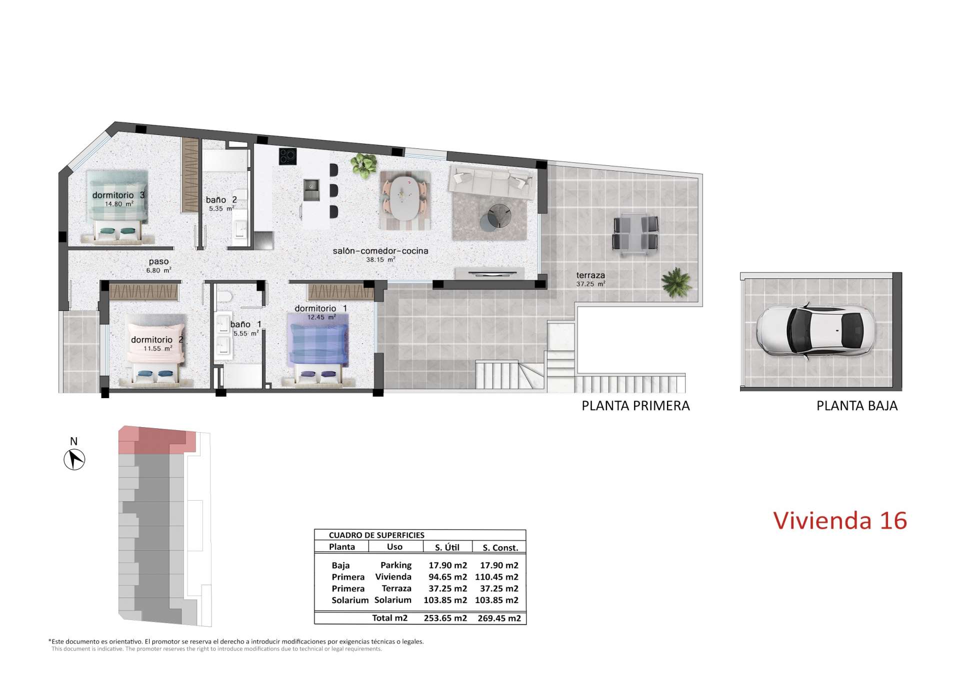 Varje fastighet har utformats för att erbjuda funktionalitet och stil, med material av högsta kvalitet för att säkerställa hållbarhet och komfort. Lägenheterna på bottenvåningen har 2 sovrum och en sluten terrass, medan lägenheterna på översta våningen har 3 sovrum och exklusiv tillgång till solarium. Den optimerade fördelningen av utrymmen, tillsammans med moderna detaljer och högkvalitativa ytbehandlingar, garanterar en bekväm och välkomnande boendeupplevelse. Dessutom finns en hiss som förbinder de olika våningarna och gör det möjligt att nå alla nivåer.