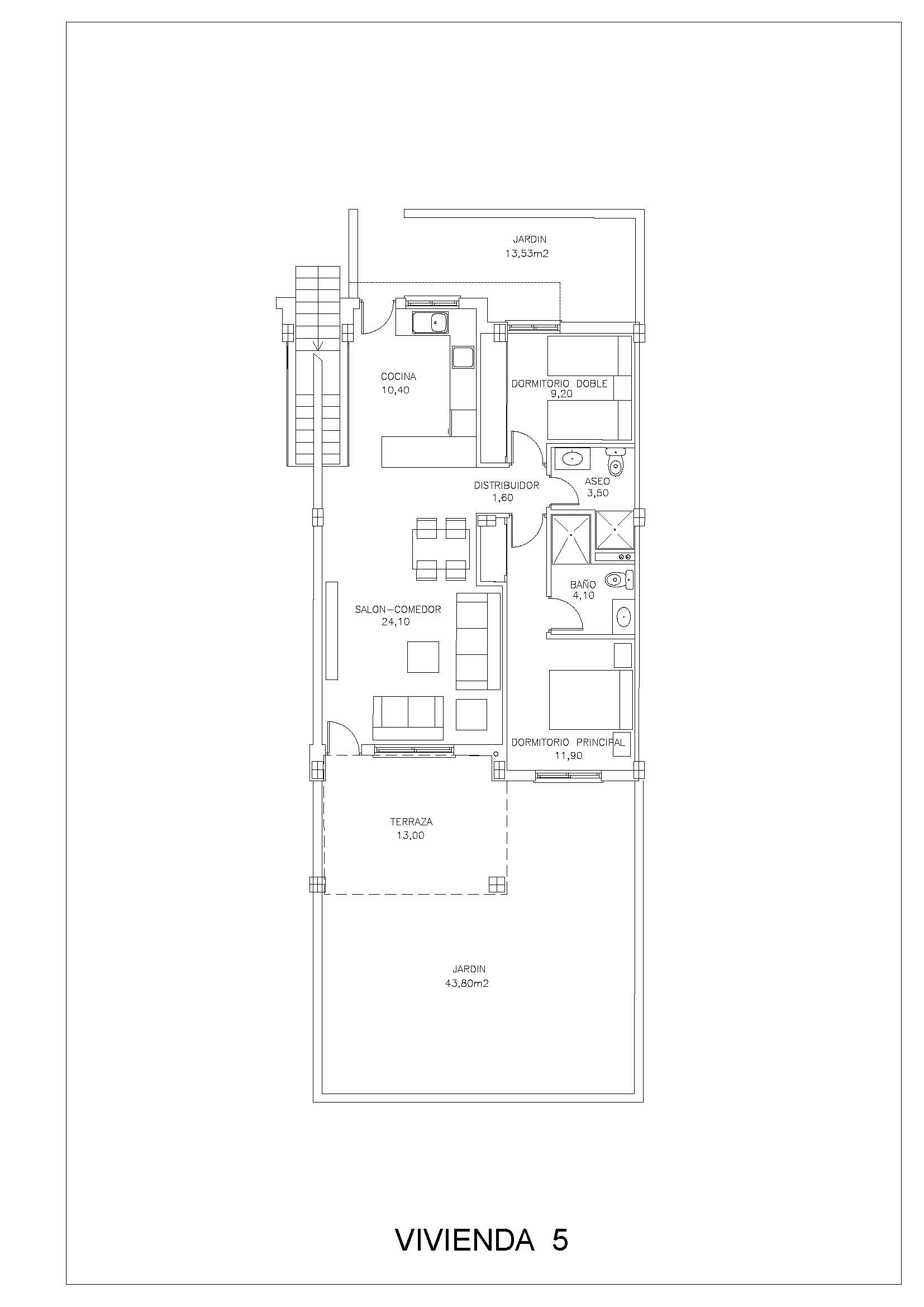 Beläget i San Miguel de Salinas, i området "La Cañada", omgivet av en vacker skyddad pinjeskog mellan golfbanorna Campoamor och Las Colinas, cirka 5 km från kusten. Detta bostadsområde erbjuder rymliga och bekväma bostäder, tillgängliga på bottenvåningen och övervåningen, med möjlighet till tre sovrum. Det är en idealisk miljö för att njuta av solen året runt i en lugn och familjär atmosfär.