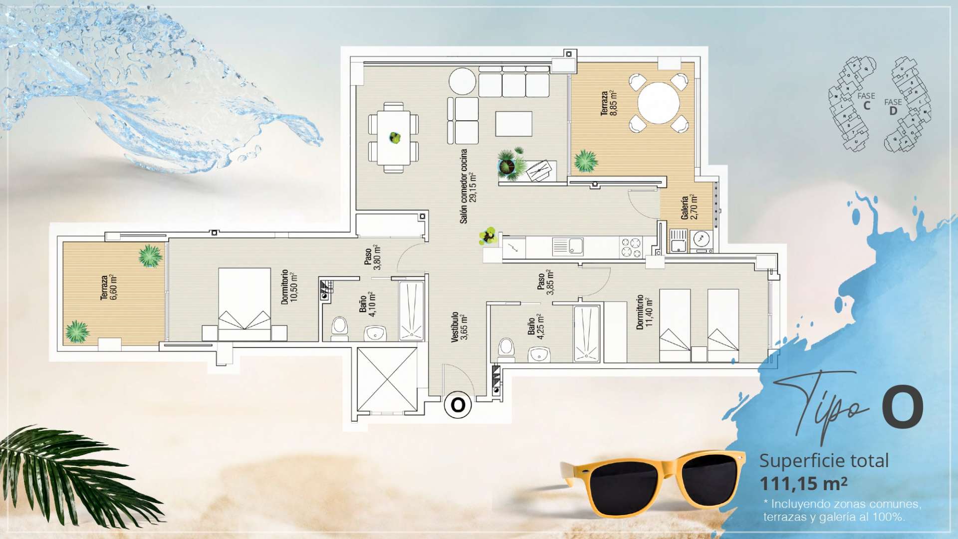Vår bostadsutveckling i La Manga del Mar Menor omdefinierar interiör lyx. Moderna badrum med duschkar, vitvaror i rostfritt stål, snickerier av hög kvalitet, luftkonditionering, LED-belysning, effektiva rörledningar och oklanderliga ytbehandlingar med stengods och laminerad gips ger maximal komfort och stil.