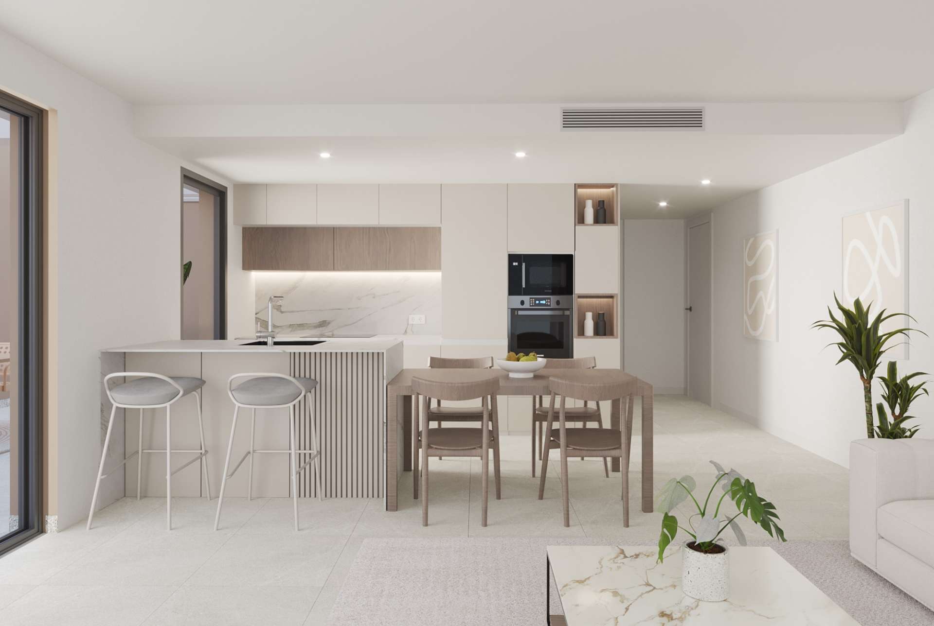 Komplexet har utformats med en modern estetik som smälter harmoniskt in i den naturliga omgivningen. Bostäderna är fördelade i kvarter med modern design, med rymliga terrasser och trädgårdar som gör att du kan njuta av den fantastiska utsikten och Medelhavsklimatet året runt.