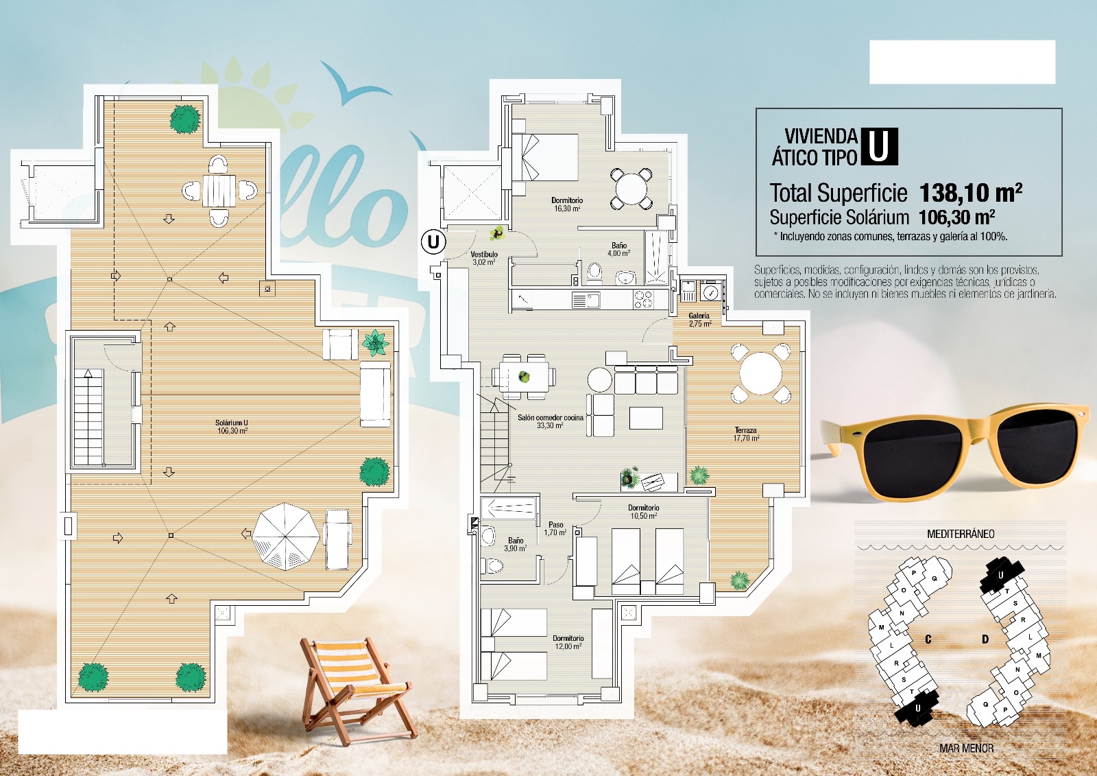 Vår bostadsutveckling i La Manga del Mar Menor omdefinierar interiör lyx. Moderna badrum med duschkar, vitvaror i rostfritt stål, snickerier av hög kvalitet, luftkonditionering, LED-belysning, effektiva rörledningar och oklanderliga ytbehandlingar med stengods och laminerad gips ger maximal komfort och stil.