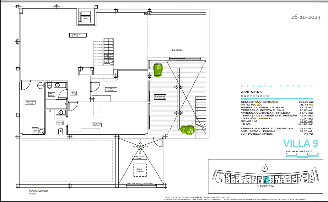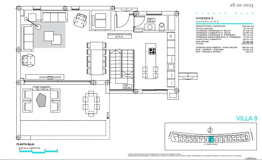Fastighetsbeskrivning Campana Garden består av flera bostadskomplex, bland annat "Orange bostadskomplex" med 17 lyxvillor. Varje villa har panoramautsikt över havet från vilken del som helst av fasaden. Tvåvåningsvillor med solarium, inre trädgård med en stor mezzanin, infinitypool och privat parkering. Varje villa är utrustad med hiss. Dessa villor är exceptionella för sin design och komfort: rymligt vardagsrum, stora sovrum med eget badrum på första våningen och solarium. Direkt tillgång från bottenvåningen till den moderna infinitypoolen och den stora terrassen, en idyllisk plats att tillbringa din semester, koppla av och njuta av solnedgångarna och havsutsikten över Benidorm.